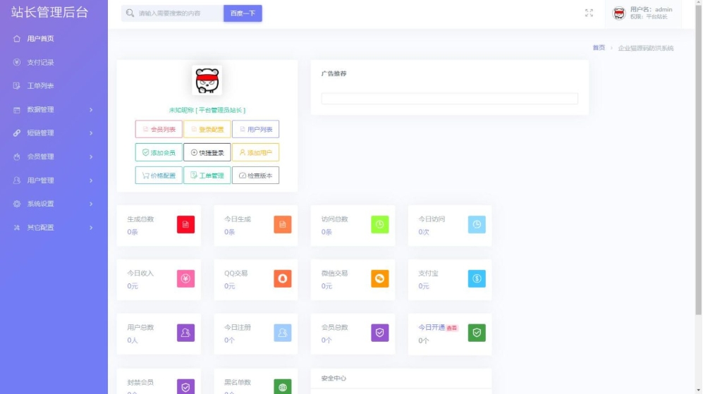 系统带访问记录列表,可查看访问者ip和访问方式,带会员和支付功能