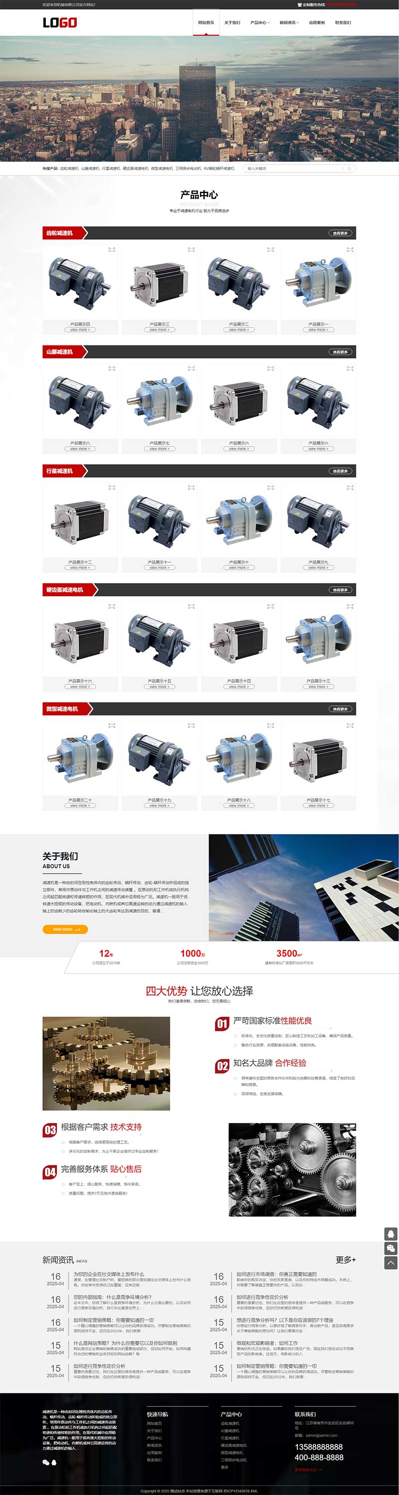 PbootCMS企业网站模板,适用于减速机、减速设备等行业(其他行业更换图文即可)。自适应手机端,数据实时同步,操作简便,附带测试数据。