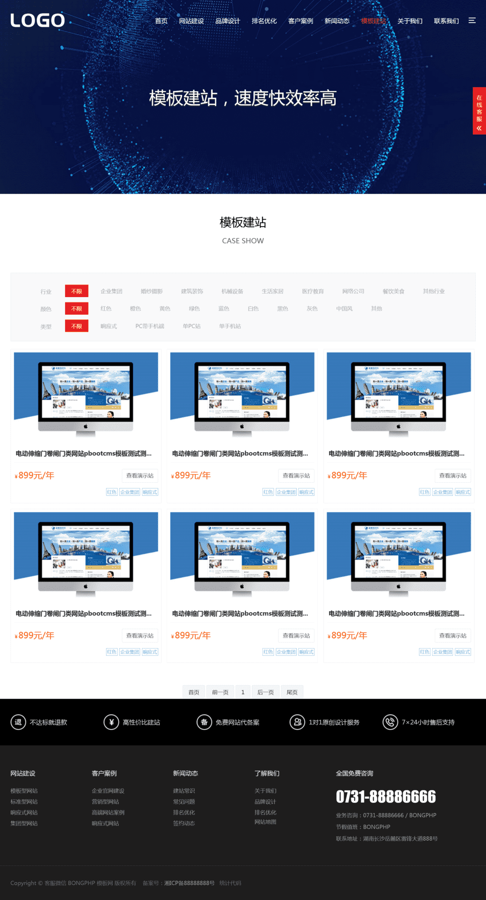 响应式设计,利用SEO。页面美观大气,带有好看动效和模板中心,作为建站推广公司是不错的选择。