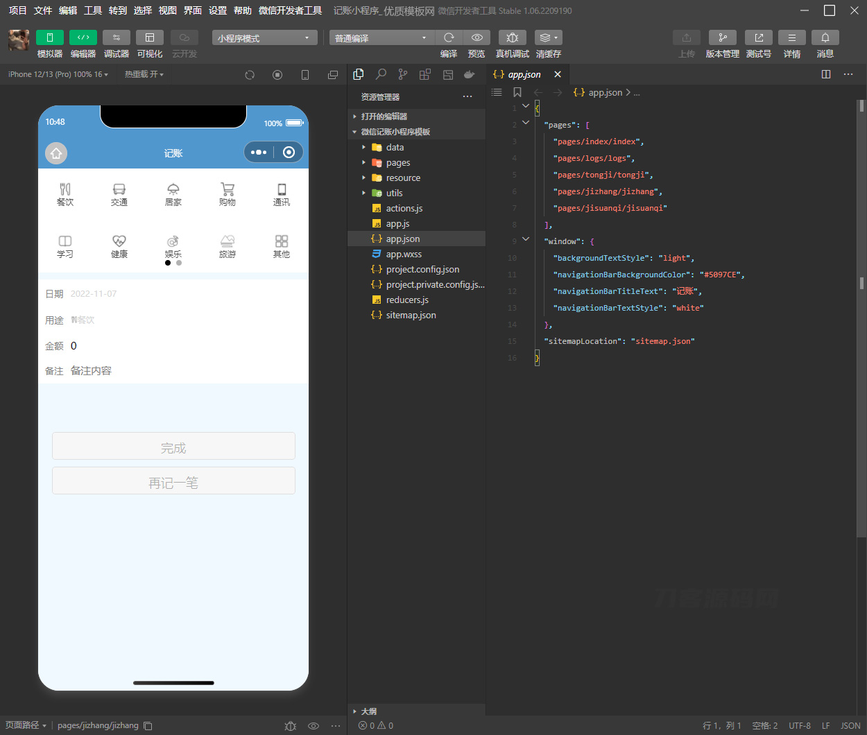 一款实用的微信记账小程序源码,包括交通、餐饮、学习、娱乐等各种开销记录和统计。纯前端页面,包括添加记账、编辑记账、统计分析等页面,所以无需服务器便可搭建。
